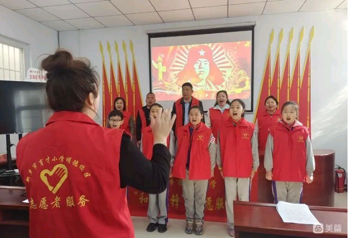 十里铺村文明实践站志愿者和“和育先锋”志愿者齐唱“学习雷锋好榜样”。