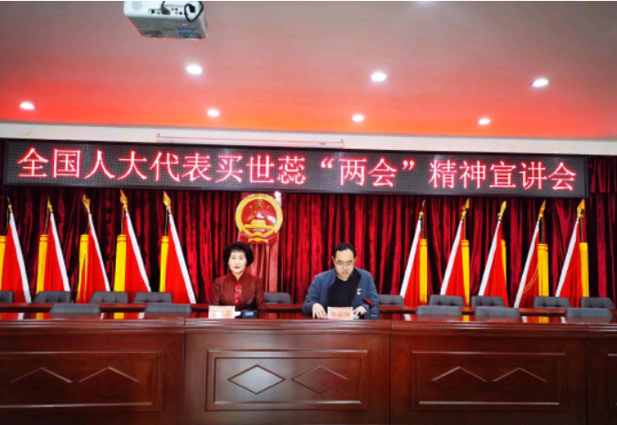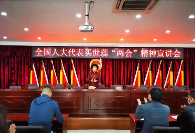 2023年3月19日上午,平原镇邀请全国人大代表买世蕊在镇机关五楼会议室开展“两会“精神宣讲会。镇机关干部、各村(社区)负责人参加会议。