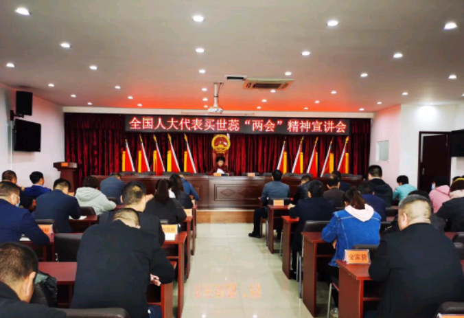 买世蕊分享了在全国两会期间的参会感悟和收获。主要围绕习近平总书记在两会期间重要讲话精神、两会概况、政府工作报告和计划、全国人大常委会工作报告、全国政协常委会工作报告、国务院机构改革等方面,向我镇的50余名干部传达学习了全国两会精神,激励广大干部群众感恩奋进,以实际行动奋力推动全国两会精神在我镇迅速落地生根、开花结果。