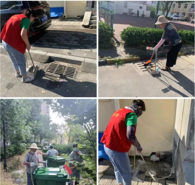 大雨过后,社区工作人员及志愿者对庭院雨水篦子、管道口和墙角、夹道等位置滞留漂浮垃圾和杂物进行清理,降低疾病通过外部环境传播的风险。
