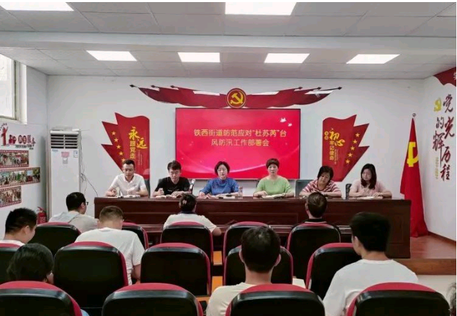 7月28日上午,铁西街道办事处召开全体人员会议,区人大常委会副主任、铁西街道党工委书记范淑霞传达省、市、区三级防范“杜苏芮”台风、防汛会议精神,再次学习“123、321”防洪救灾相关工作要求”,安排部署相关工作。