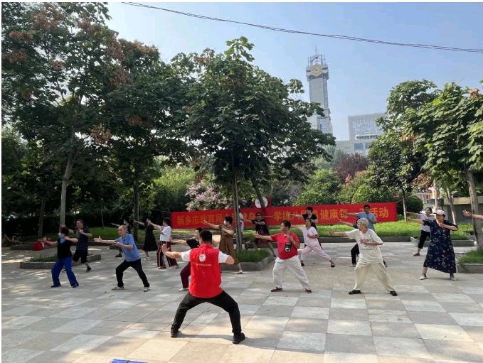 “学练八段锦 健康每一天”全民健身活动。为提高广大群众的科学健康意识,养成良好的体育锻炼习惯。解放路街道联合新乡市教育局在怡园广场开展“学练八段锦,健康每一天”活动。提高居民的生活质量和健康水平。八段锦功法是一套独立而完整的健身功法,起源于北宋,共八百多年的历史。古人把这套动作比喻为“锦”,意为五颜六色,美而华贵。体现其动作舒展优美,视其为“祛病健身,效果极好;编排精致;动作完美”。现代的八段锦在内容与名称上均有所改变,此功法分为八段,每段一个动作,故名为“八段锦”,练习无需器械,不受场地局限,简单易学,节省时间,作用极其显著。在志愿者的引导下,群众们认真学习每一个动作要领,深入体验传统文化和古代中医科学的魅力以及强身健体的乐趣。