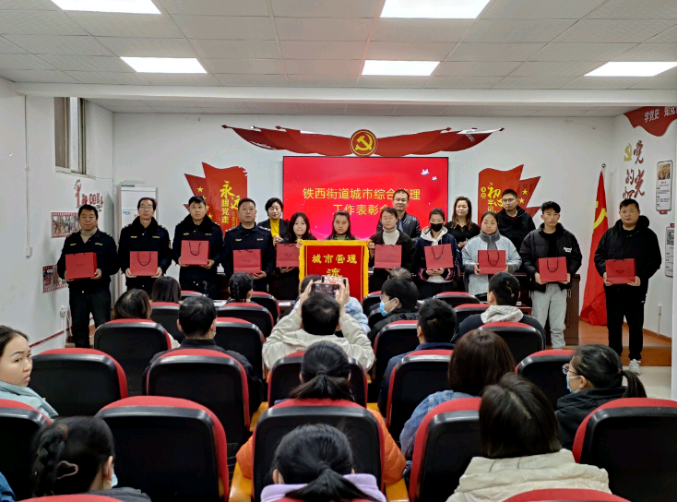 为表彰先进,树立典型激励广大职工,11月10日,铁西街道举办城市综合治理工作表彰会,对城管科、综合执法大队及四个社区城管专干专项表彰。区人大常委会副主任、铁西街道党工委书记范淑霞,主任谢飞向受表彰的先进集体和个人表示热烈的祝贺,向奋战在城市管理领域岗位上的全体人员致以问候。范淑霞强调,此次受到表彰的先进科室和优秀个人,体现了铁西城管敢战能胜、开拓奋进、奋勇争先的城管“铁军”风采。全体工作人员要以先进为标杆、以典型为榜样,坚持干在实处、走在前列,全力以赴推动城市管理工作打开新局面、再上新台阶。