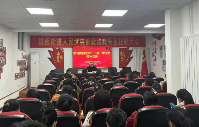 11月13日,铁西街道办事处组织召开学习贯彻党的二十届三中全会精神宣讲专题党课。铁西街道党工委书记陈晖从党的二十届三中全会重要意义和精神、结合实际推动高质量发展等方面对党的二十届三中全会精神的丰富内涵、核心要义和实践要求进行了系统宣讲和深入阐释。他指出:学习贯彻党的二十届三中全会精神是一项长期而艰巨的任务。我们要以更加饱满的热情、更加务实的作风、更加有力的措施,推动学习贯彻工作不断取得新的更大成效,推动铁西街道办事处各项工作取得新的发展。