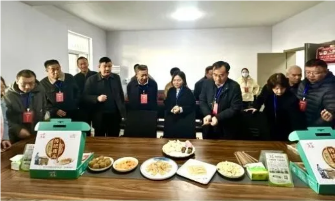 视察组赴平原镇十里铺“小村故事”食品发展有限公司地进行实地察看,详细了解了“小村故事”有限公司中皮冻、变蛋等传统食品加工企业集体经济发展情况和平原镇其他特色农业产业。在随后召开的座谈会上,专题听取了区农业农村局和平原镇的工作情况通报,区政协各位领导根据实地视察、工作通报等情况,提出要树立品牌效应、加强帮扶力度、学习先进经验、提升附加值等意见建议。